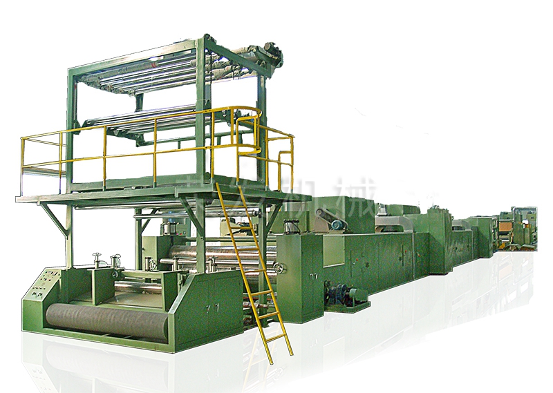 放布→储布→上胶、背胶、喷胶、刮胶、浸胶→拉幅定形→热压烫平→风冷冷却→储布→分条裁边→全自动裁断堆叠→或组合收卷机。